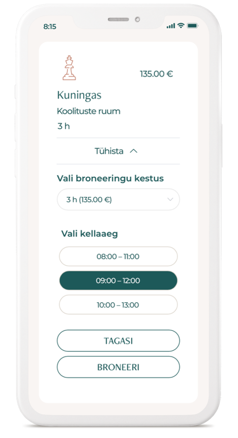 Kui broneerid ruumi terveks päevaks, ei ole sellel pausil sinu jaoks tähendust – ruum jääb sinu kasutusse katkematult kogu päevaks kell 9.00–17.00.
